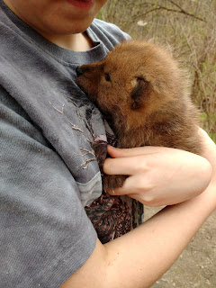 Last week at Learning in the Woods, I noticed a strange “call”. I assumed it was a bird that I had never heard before. About an hour later, some of the kids ran over yelling excitedly “we found a puppy!” I immediately